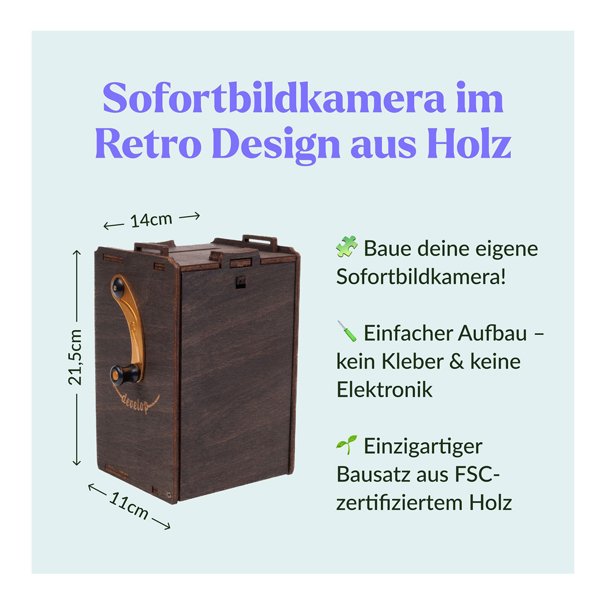 Baue keine Kamera. Baue einen Moment, den du nie vergisst. Aus 65 Bauteilen wird eine Sofortbildkamera - und was für eine! Kein Firlefanz, nichts Digitales, kein Schnickschnack. Sondern ein echtes Stück Handwerkskunst.